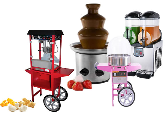 Double Barrel Slushy Machine, Candy Floss Machine, Popcorn Machine, Chocolate Fountain